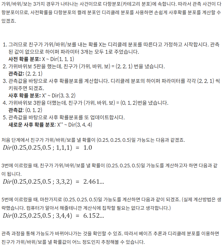 . 다항 분포의 켤레 사전 분포는 Dirichlet
